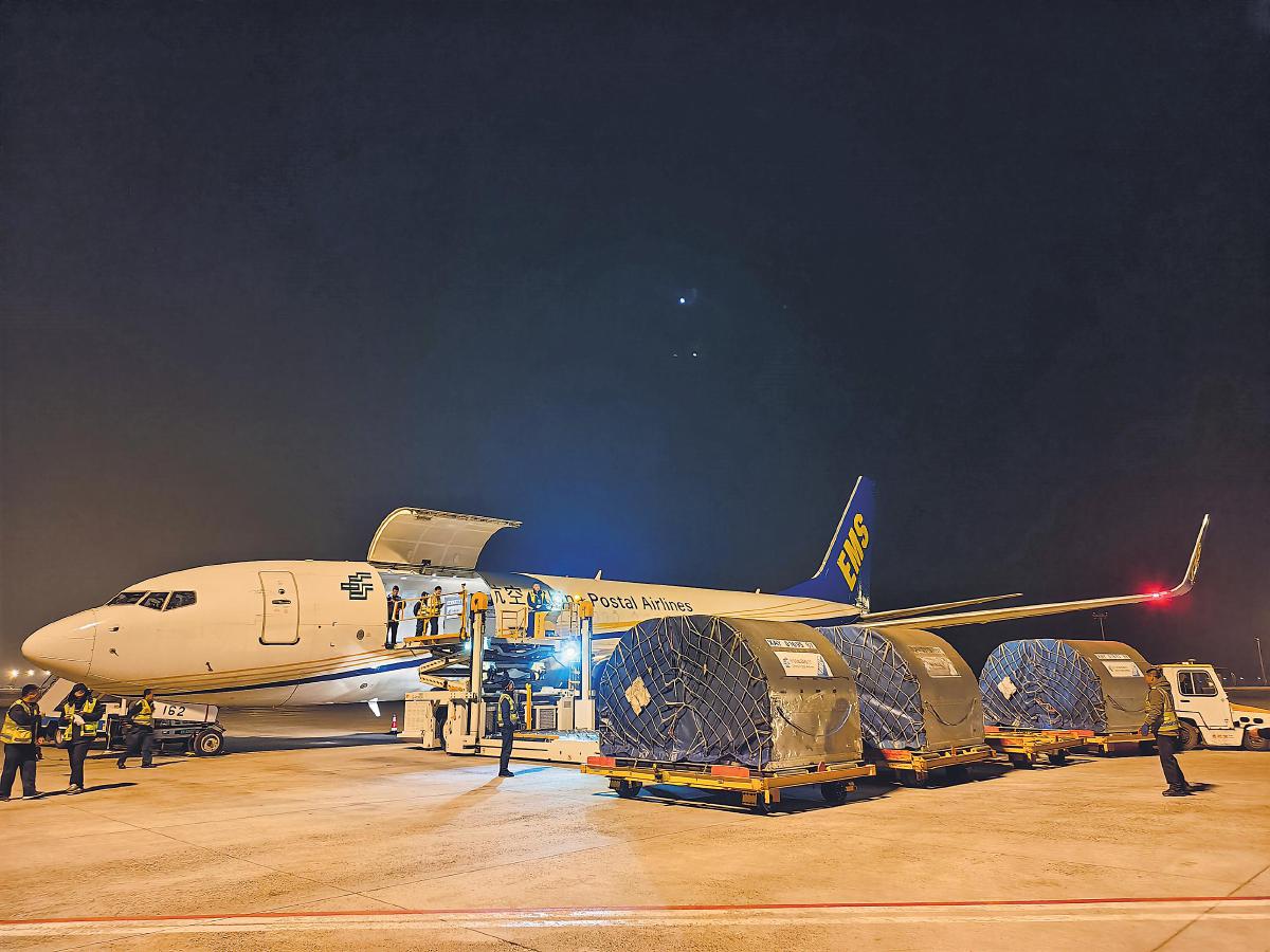 包裹从内蒙古搭乘邮政航空货运专机经转南京集散中心奔赴上海。