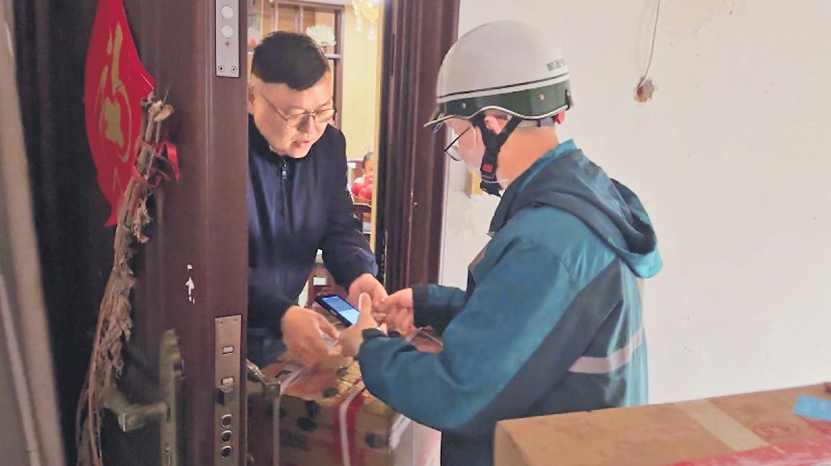 世博揽投部揽投员取件后,开始上门投送包裹。