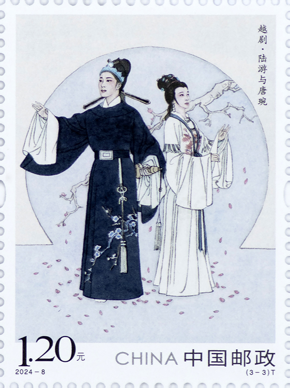 中国邮政定于2024年5月20日发行《越剧》特种邮票1套3枚。详情如下: