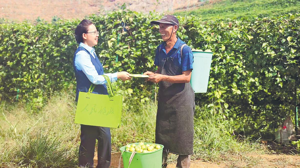 眼下,云南省屏边苗族自治县玉屏镇有“黄金果”之称的百香果喜获丰收。屏边县邮政分公司党委在百香果种植基地设立党员服务点,帮助果农采摘、分拣、装箱、打包百香果。同时,开辟专属寄递通道,确保用最快速度将百香果以最佳状态送达。小小百香果的畅销之旅,生动体现了邮政“从田间到餐桌”的全链条高效服务。