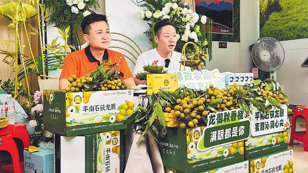 “石硖龙眼是贵港市平南县的特产,作为国家地理标志认证的水果,它的特点是果肉厚实、入口留香。”在石硖龙眼核心基地,邮政直播团队走进田间地头,用镜头展示龙眼采摘、分拣的全过程,吸引网友纷纷下单;一旁的邮政员工根据订单,将龙眼打好包、贴好单、装上车,发往全国各地。仅一场直播,贵港邮政就卖出1万公斤龙眼,直播GMV达100余万元。