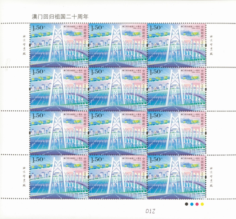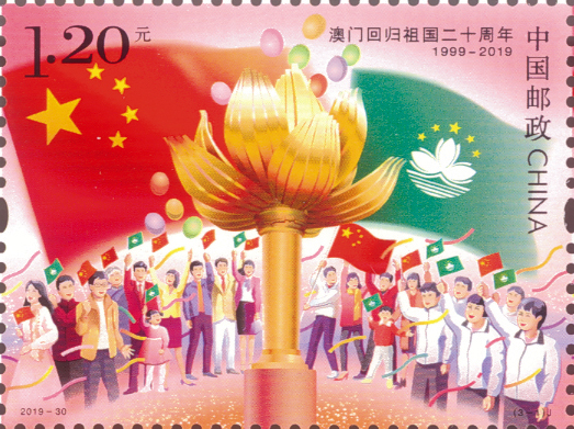 中国邮政定于2019年12月20日发行《澳门回归祖国二十周年》纪念邮票1套3枚。全套邮票面值为3.90元。
