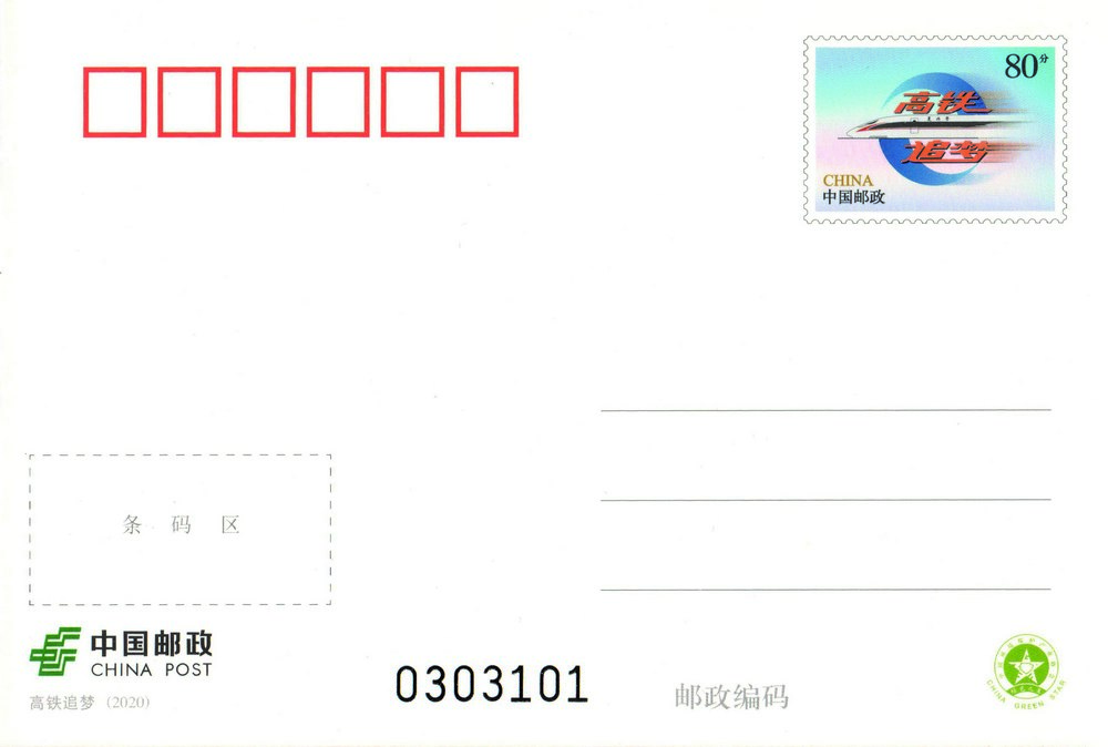中国邮政定于2020年12月30日发行《高铁追梦》普通邮资明信片1套1枚。详情如下: